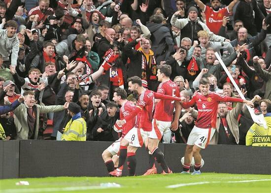 曼联球员庆祝制胜进球 图/视觉中国
